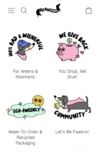 Bean Goods creates eco-friendly dachshund-themed products and donates part of their sales to rescue organizations.